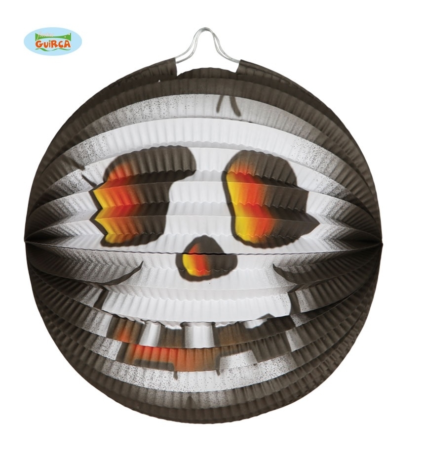 Auf der schwarzen Ballonlaterne befindet sich ein weißer Totenkopf mit rot/gelben Augen, Nase und Mund. Diese Laterne kann einem regelrecht das Fürchten lehren. Die Totenkopflaterne eignet sich als Dekoration für Halloweenparty und Piratenpartys gleichermaßen.