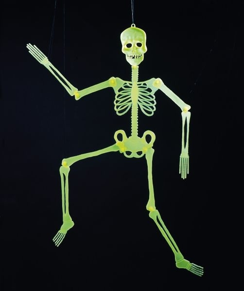 Im Dunkeln kann man sich vor diesem Skelett ganz schön erschrecken. Da das Skelett flach ist, kann eignet sich diese Halloweendekoration am Besten an der Wand oder an Türen. Das Leuchtskelett ist ca. 1,50 m groß.
