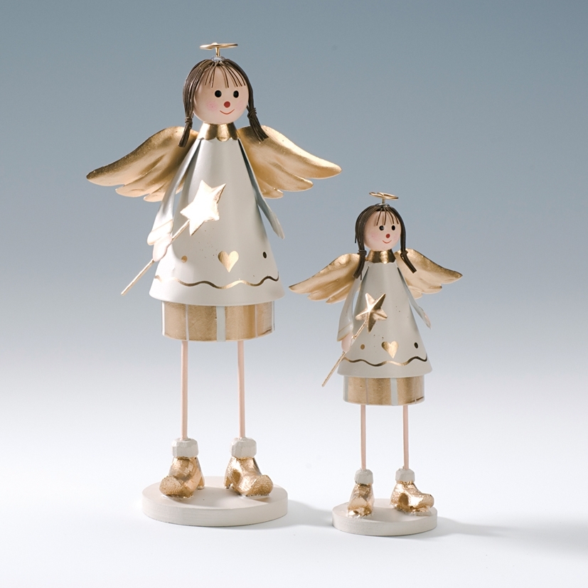 Als Weihnachtsmaterialien werden nicht nur Holz sondern auch zunehmend Metall verwendet. Die niedlichen Engel sind weiß und glänzen mit goldenen Akzenten.