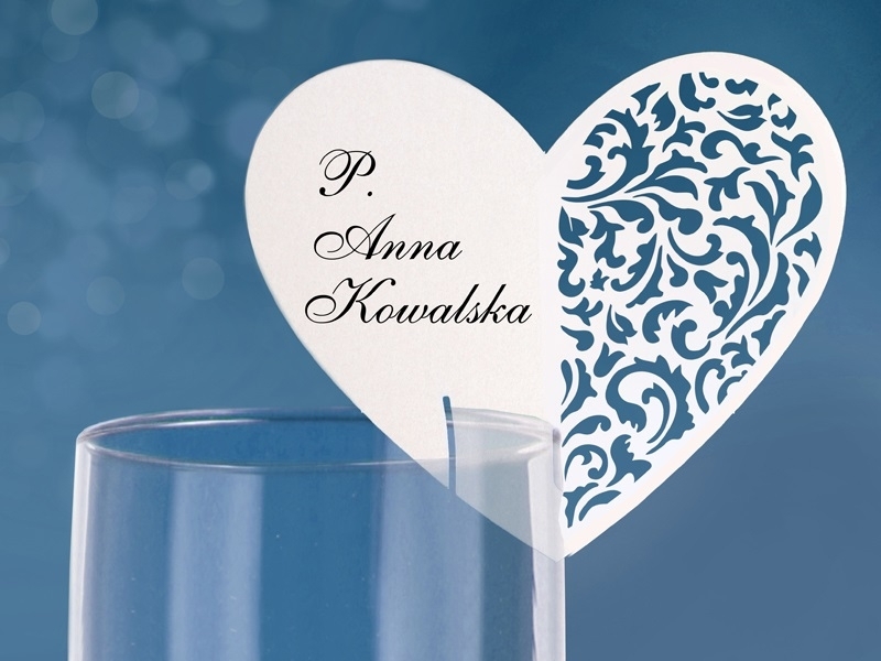 Diese tollen Platzkarten werden nicht wie gewöhnlich auf den Tisch gestellt, sondern an ein Glas gesteckt. Die weißen Tischkarten für Hochzeiten und Verlobungen haben die Form von einen Herz. Die eine Seite ist zum Beschriften und die Andere hat ein romantisches Muster.