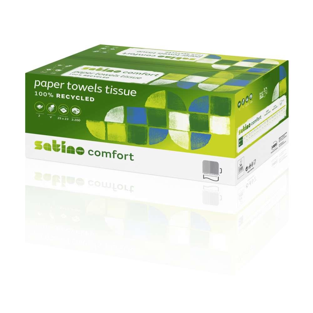 Das 2-lagige Handtuchpapier ist weiß und hat eine ZZ-Falzung. Es ist 25 cm breit und ein Blatt ist 23 cm lang. Diese Handtuchpapier passen in Handtuchspender mit einer Innenbreite von 25 cm.