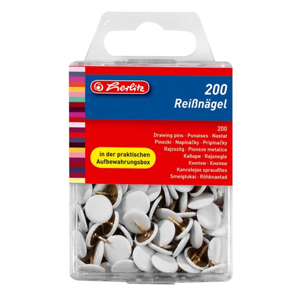 Egal ob zum Poster aufhängen oder ob eine Tischrolle an der Bierzeltgarnitur fixiert werden soll. Reißnägel finden überall ihren Einsatz. Diese 200 Heftzwecken befinden sich in einer praktischen Aufbewahrungsbox.
