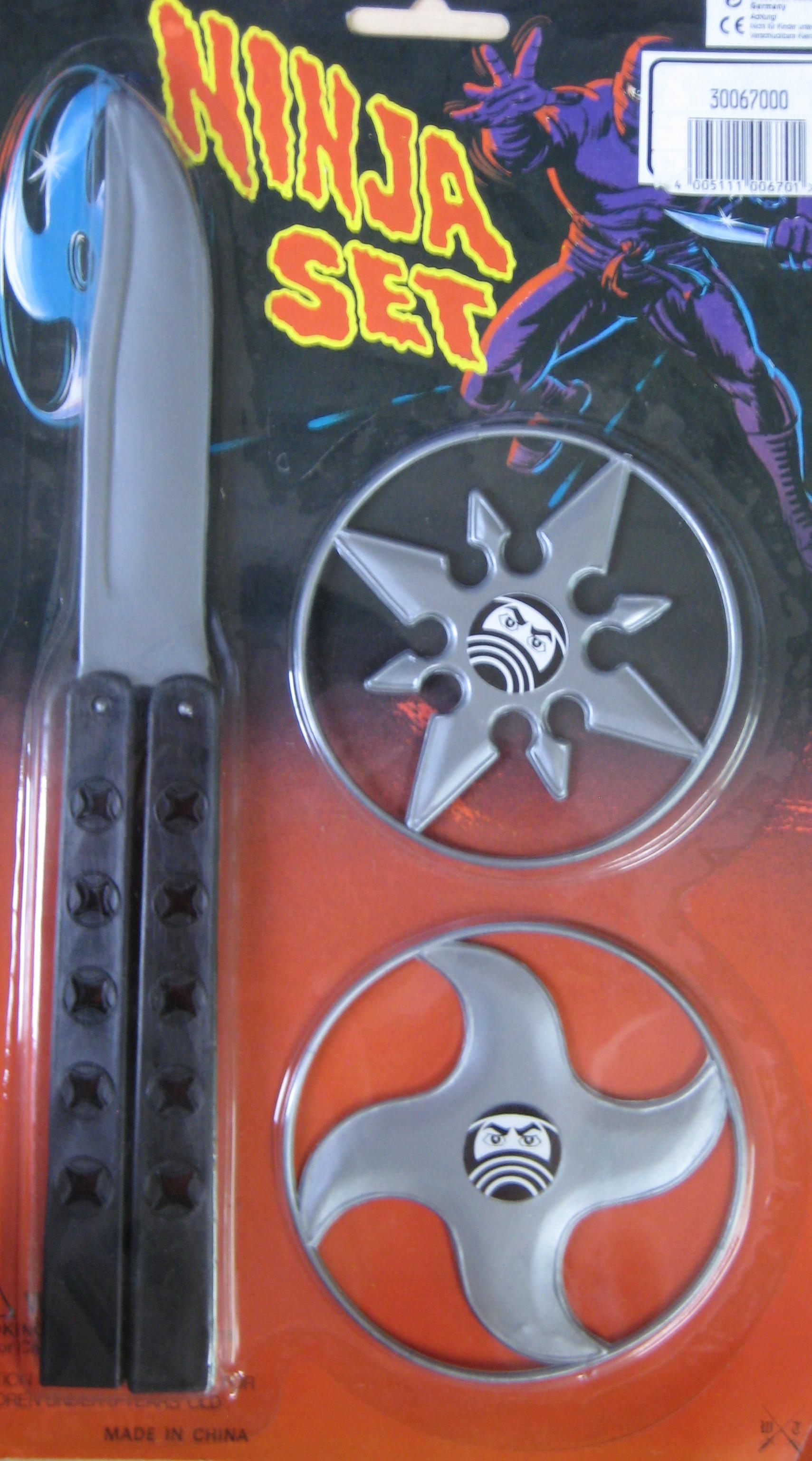 Dieses Ninjaset besteht aus Klappmesser und 2 Stück Wurfsterne.