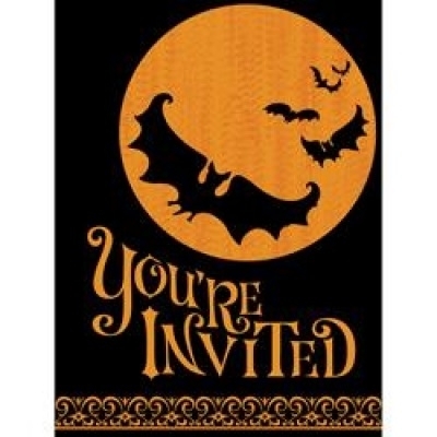 Die Karten sind schwarz mit orangener Schrift und einem orangen Mond, in den schwarze Fledermäuse fliegen.