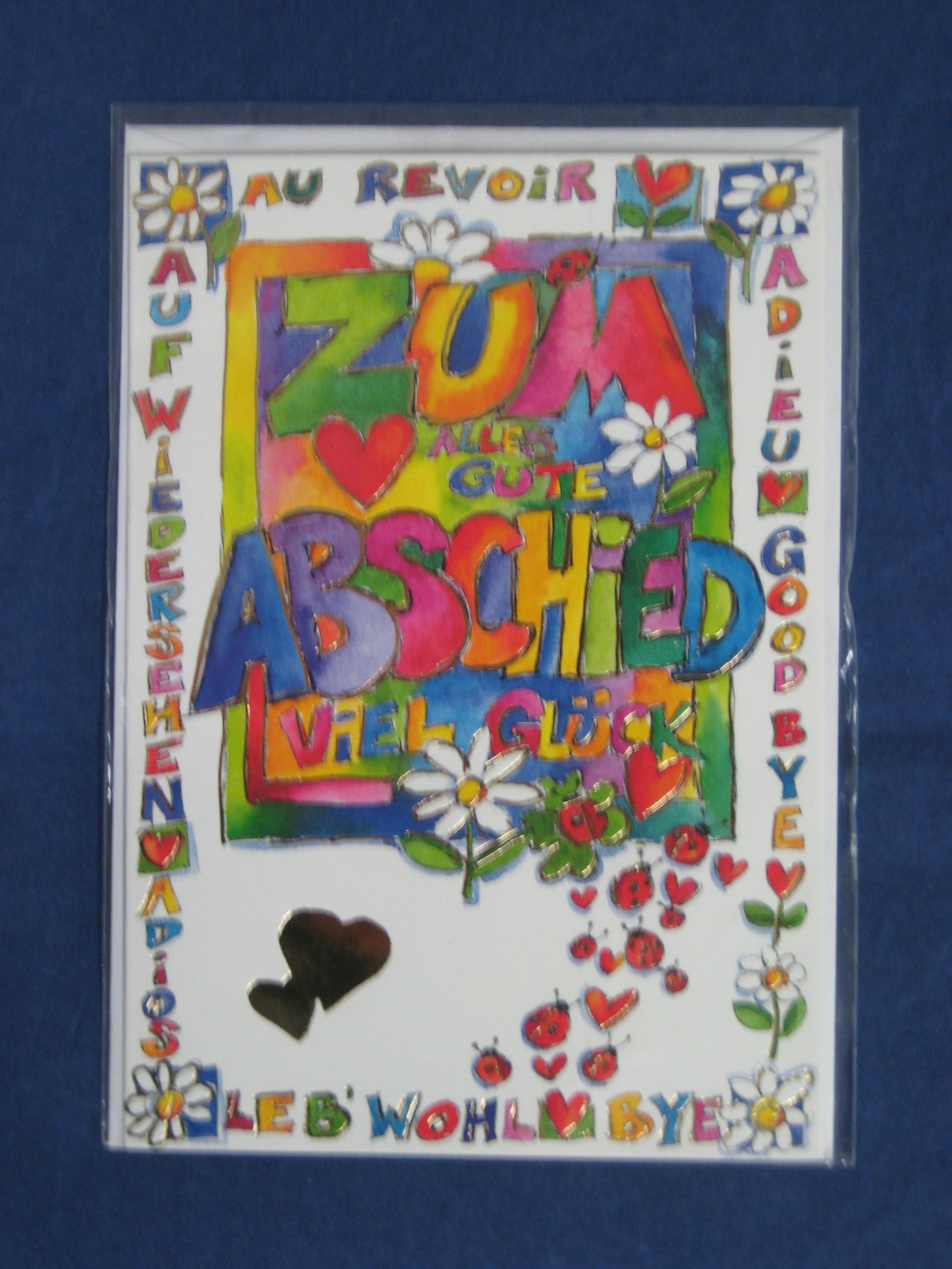 Egal ob Ruhestand oder ob ein guter Freund fortzieht - diese Karten haben ein modernes und ansprechendes Design und passen immer. Die Karten sind 11,5 cm breit und 17 cm hoch. Sie bekommen sie mit weißem Kuvert geliefert.