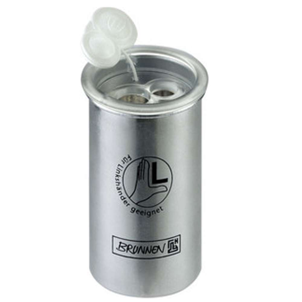Natürlich erhalten finden Sie in unserem großen Linkhändersortiment auch einen Anspitzer. Diese Dose ist verschließbar und hat einen Anspitzer für dünne und dicke Stifte. Die Aluausführung verleiht ihm ein edles Design. Die Dose ist 6,5 cm hoch und hat einen Durchmesser von 4 cm.