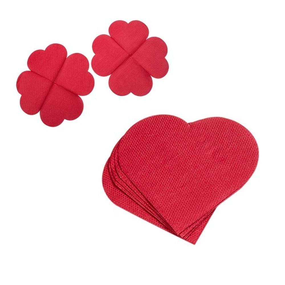 Diese kleinen Servietten sind wie ein Herz gefaltet. Aufgeklappt sind sie 25 x 25 cm groß und 2-lagig. Die roten Herz-Servietten eignen sich prima zu einem Sektempfang auf der Hochzeit oder Sie überraschen Ihr Herzblatt mit diesen Servietten zum Valentinstag.