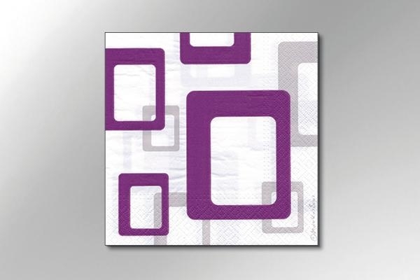 Diese modern gestalte Serviette passt zu allen Gelegenheiten. Passend hierzu können wir Ihnen einen quadratischen Pappteller in lila anbieten.