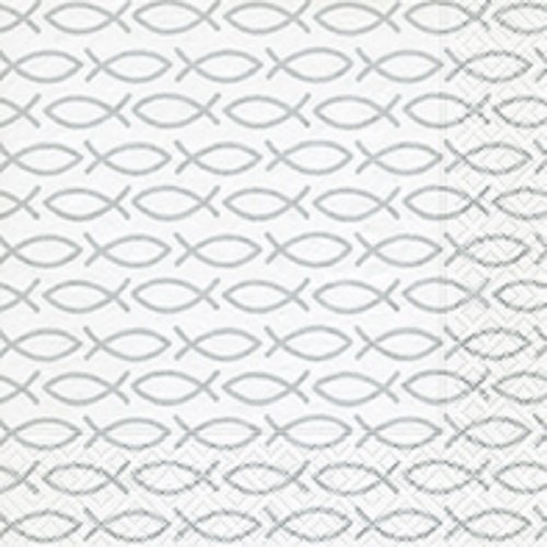 Auf der weißen Serviette Religious grey befinden sich viele kleine graue Fische.