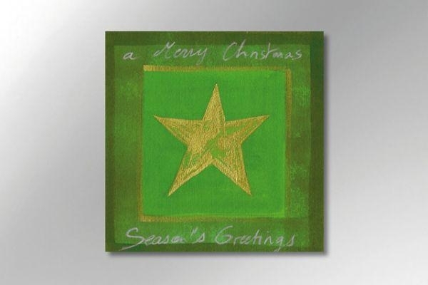Die klassische Weihnachtsserviette "Goldstar green" hält was sie verspricht. Auf einem grünem Untergrund in zwei Farbtönen befindet sich nur ein goldener Stern umrandet von einem goldenen Quadrat und dem weißen Schritzug "a Merry Christmas" und "Seasen´s Greeting".