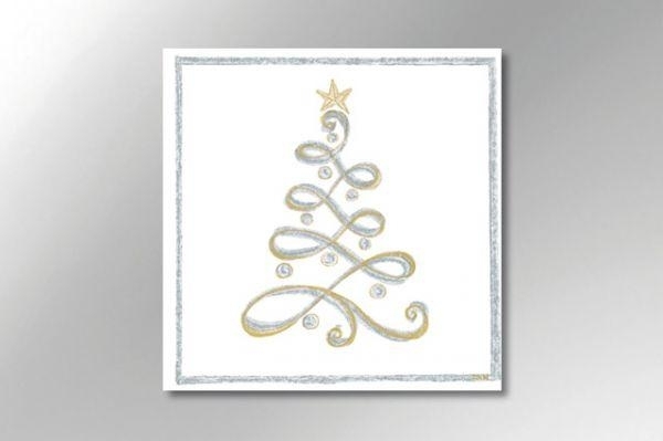 Diese schlichte, aber doch sehr elegante und moderne Weihnachtsserviette passt zu jeder Dekoration. Die Weihnachtsserviette "Modern Christmas Tree" wurde nur in den Farben weiß, silber und gold gestaltet. Es handelt sich hier um ein Zellstoffservietten mit 3 Lagen in der Abmessung: 33 x 33 cm - 1/4-falz.