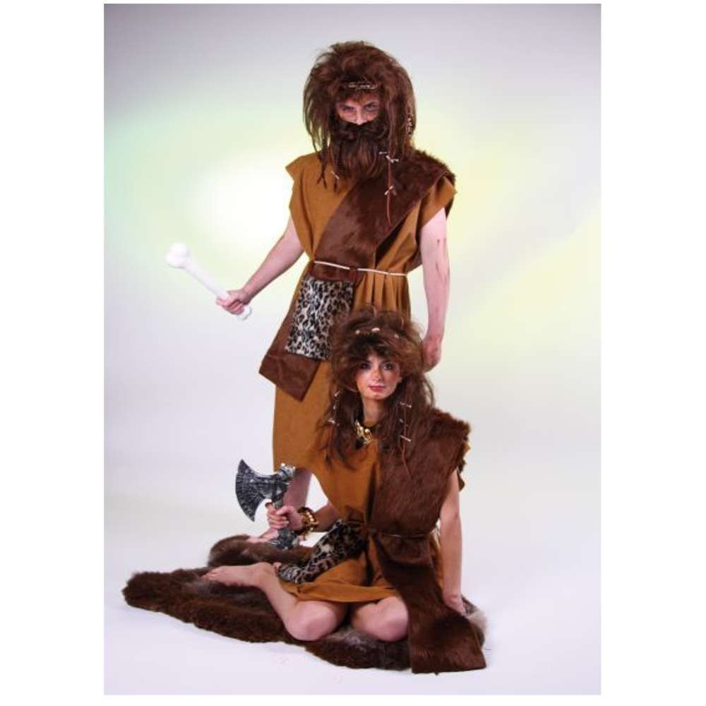 Das Neandertalerkostüm besteht aus hellbraunem Kleid und einem dunkelbraunem Schulterüberhang (wie ein Fell), mit einer weißen Kordel kann das Kostüm pasend tailliert werden. Damit der Steinzeitmensch seine Utensilien untebringen kann, befindet sich am Gürtel eine Tasche in Geparden-Optik.