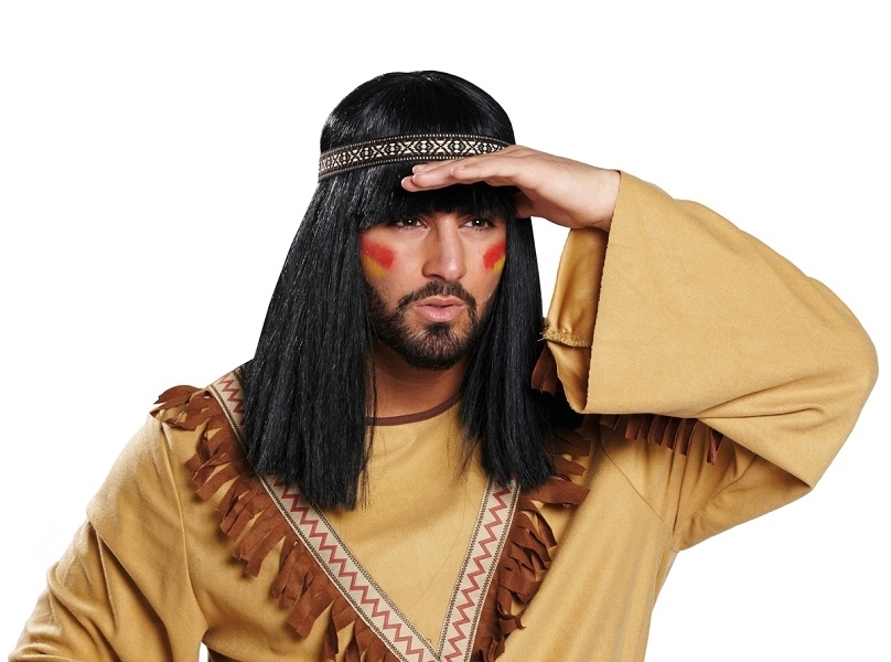 Die halblange, schwarze Indianerperücke wird mit einem passenden Indianerstirnband ohne Feder geliefert.