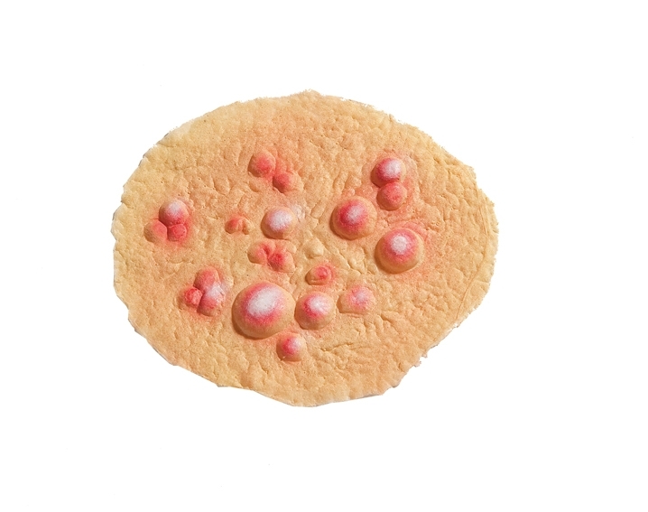 Halloween sind Wunden, Blut und andere gruselige Accesoire ein must-have. Die Wunde sieht echt und ekelig aus. Genau das richtige für Sie? Die Wunde mit Bläschen passt nicht nur zu Halloweenkostümen sondern auch zu Mittelalterkostümen. Die Wunde hat einen Durchmesser von ca. 8 cm.