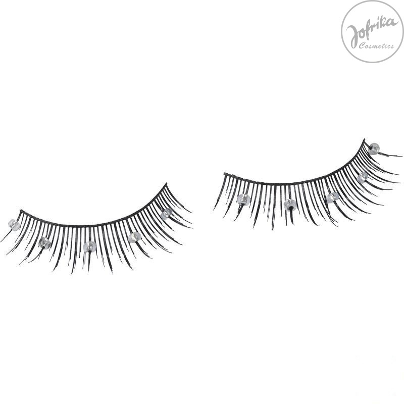 An den schwarzen Kunstwimpern sind kleine silberfarbende Perlen angebracht. Diese Wimpern passen zu jedem Show- und Glamourkostüm. Die Wimpern sind ein echtes Highlight zu Ihrem Outfit.