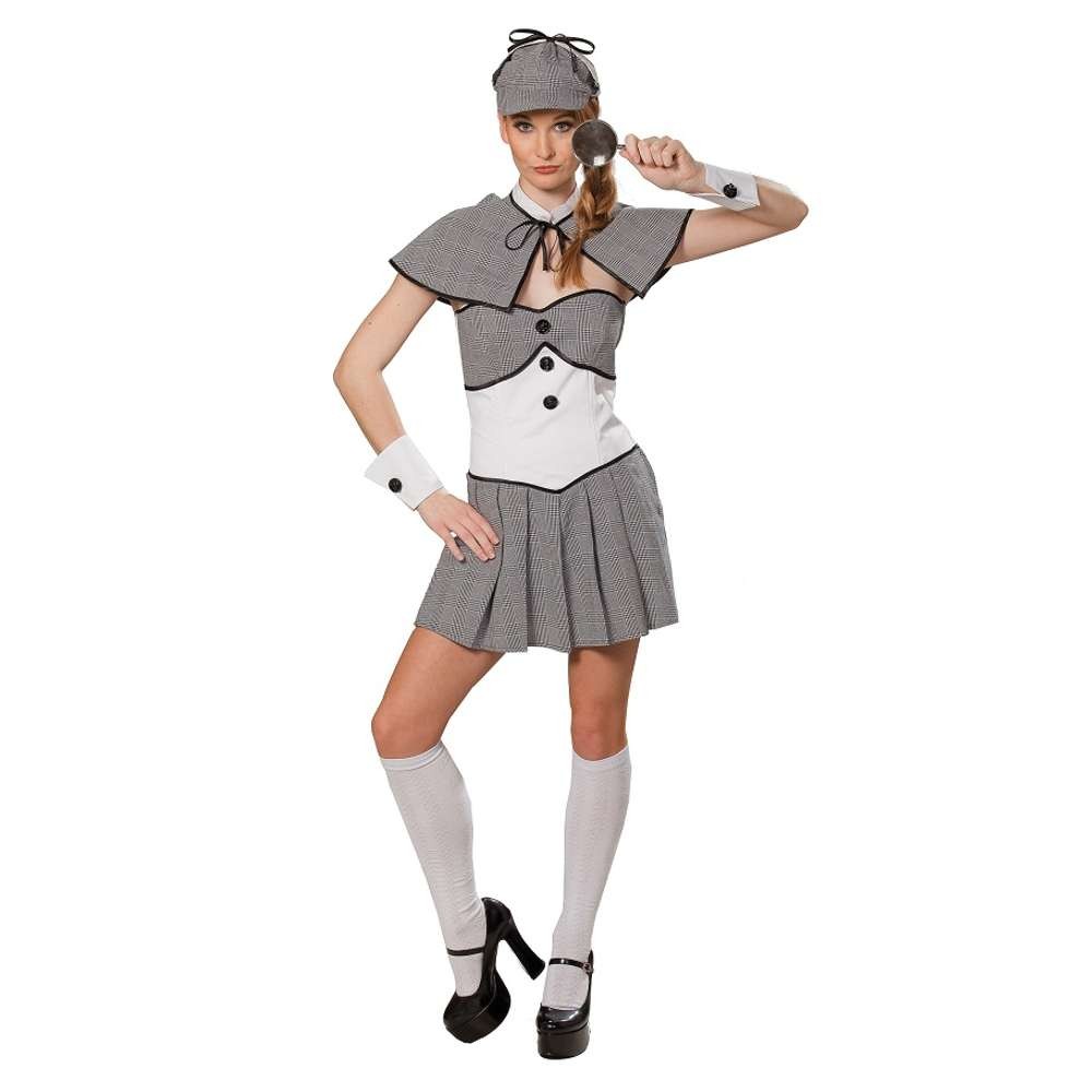 Das Dektivinkostüm besteht aus einem Minikleid mit Schulterumfang, Armmanschette und und einer Dektivmütze.