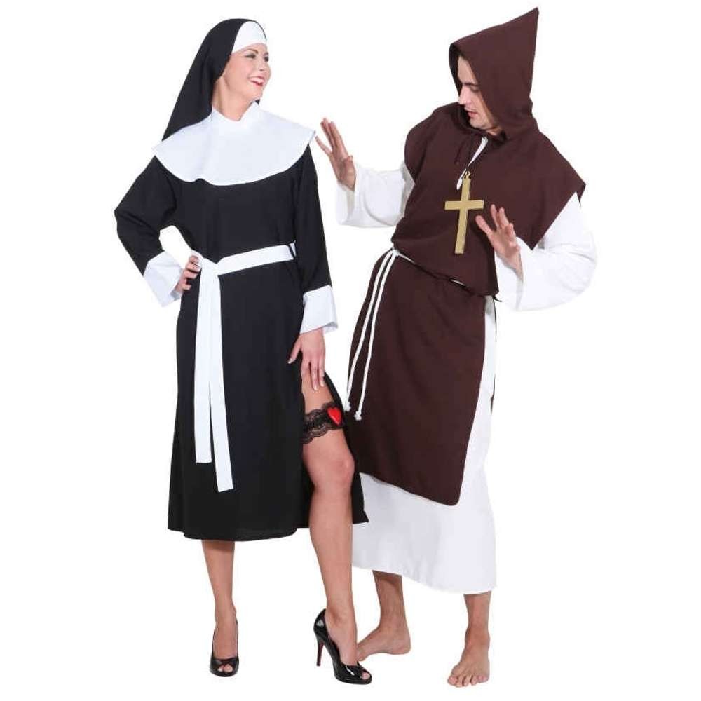 Gerade im Karneval dürfen die "Seelentröster" nicht fehlen. Dieses sexy Nonnenkostüm ist natürlich tief schwarz, hat einen großen, weißen, angenähten Kragen, einen weißen Gürtel und ein schwarzes Tuch mit weißer Stirn. Das Tuch wird unterm Kinn gebunden. Das Kleid wird im Nacken mit Knöpfen geschlossen. Auf der linken Seite ist im Kleid ein Schlitz.