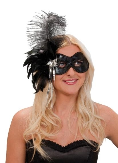 Sie suchen nur eine kleine Verkleidung? Die Dominomasken sind dafür sehr beliebt. Mit der Augenmaske können Sie auf jede Faschingsparty gehen. Diese schwarze Augenmaske hat schwarze Federn und silberne Pailettenverzierung.
