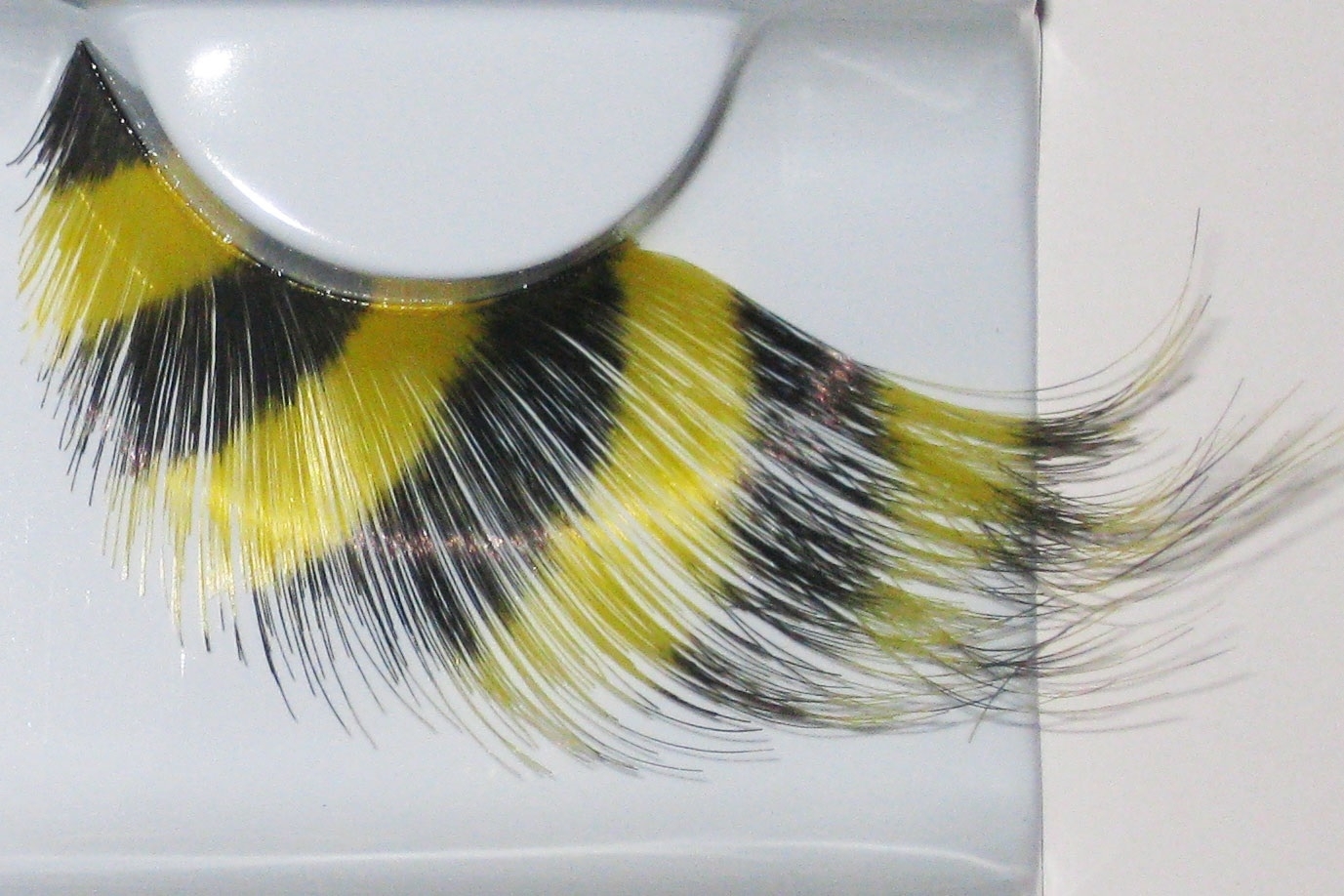 Die Wimpern sind aus gelben Federn mit schwarzen Längsstreifen - 1 ml Wimpernkleber und eine Anleitung werden mitgeliefert. Diese Wimpern sind aber auch ein tolles Fanaccesoire für BVB-Fans.