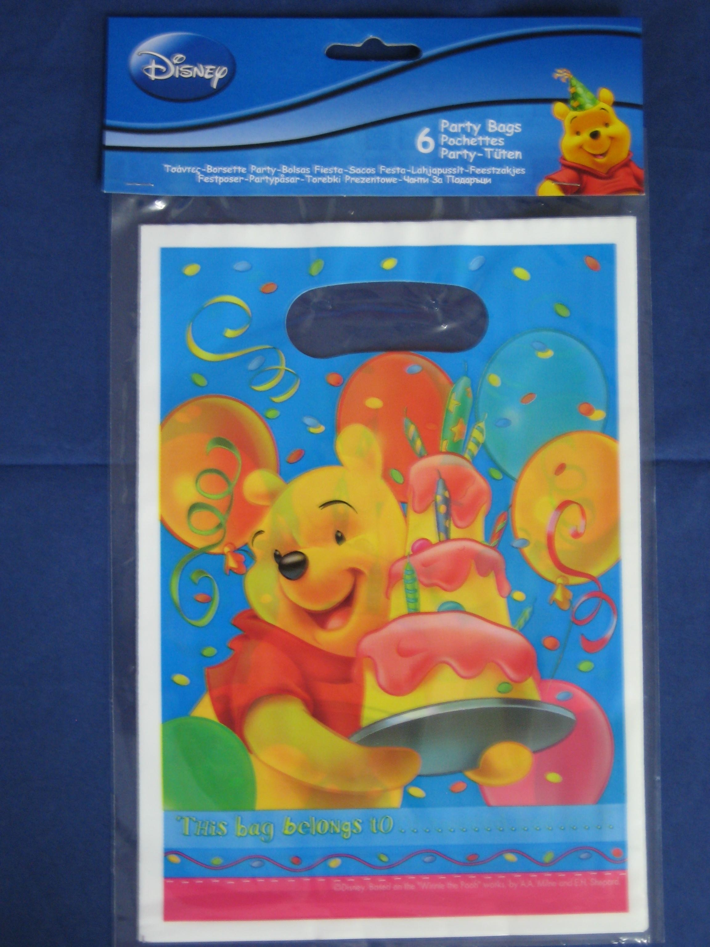 Man muß ihn einfach liebhaben - Winnie the Puh - Gerade für die kleinen Geburtstagskinder ist dieses Motiv besonders passend. Sie erhalten natürlich Servietten, Becher, Teller, Tischdecke, Einladungskarten und Partygeschenkebeutel mit diesem Motiv. Die Geschenkebeutel sind aus Kunststoff und sehen aus wie kleine Grifflochtragetaschen. Jeder Beutel hat ein kleines Beschriftungsfeld. Die Partygeschenkebeutel sind 23,3 cm hoch und 16,2 cm breit.